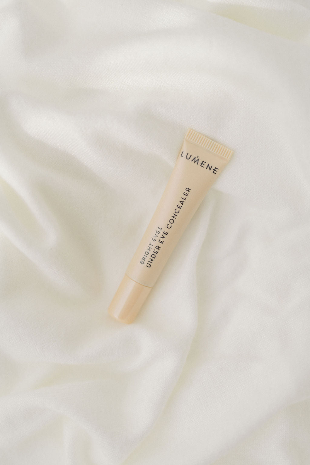 Lumenen Bright Eyes peitevoide peittää hetkessä silmänalusten tummuuden ja häivyttää turvotusta saaden silmänympärysihon näyttämään selvästi kirkkaammalta ja virkeämmältä. Voiteeseen tarkasti valittu aprikoosin sävy korjaa ja neutraloi silmänalusten sinisyyttä luoden tasaisemman ihonsävyn. Pohjoista lähdevettä, pohjoista luomukoivunmahlaa ja pohjoista lakkaa sisältävä pehmeä, helposti levittyvä koostumus kosteuttaa ja kirkastaa ihoa.